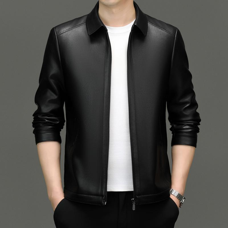 Тонкая кожаная куртка для мужчин весна и осень новая мужская кожаная куртка повседневная деловая тонкая мужская куртка из искусственной кожи с лацканами