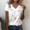 Женские летние топы, повседневная базовая футболка с V-образным вырезом и цветочным принтом, с коротким рукавом