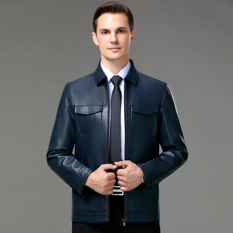 Кожаная куртка мужская, новый стиль, деловая, повседневная, кожаная куртка для мужчин среднего возраста, осенне-зимнее пальто с лацканами