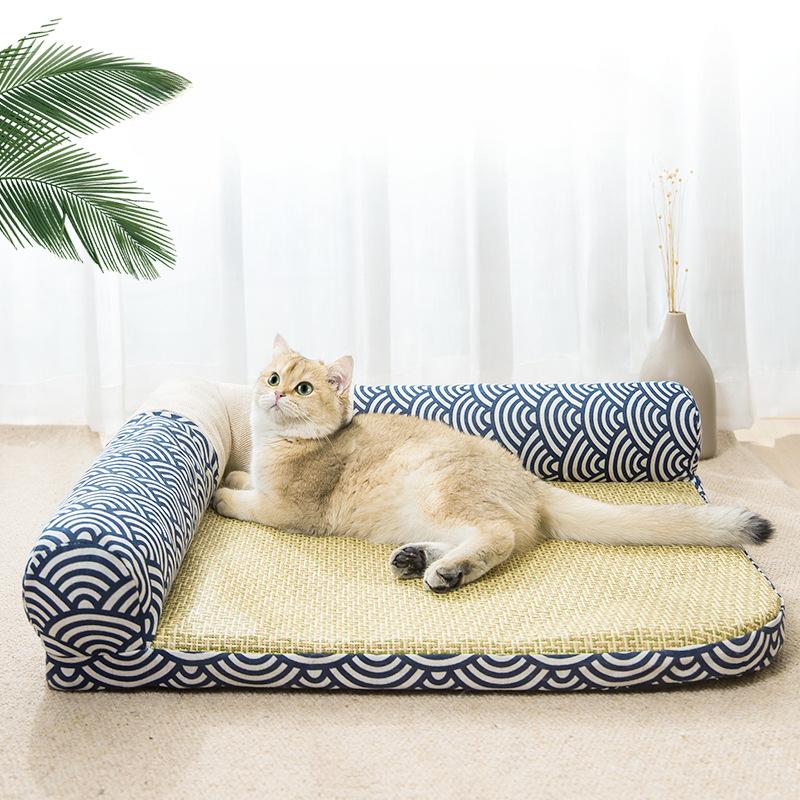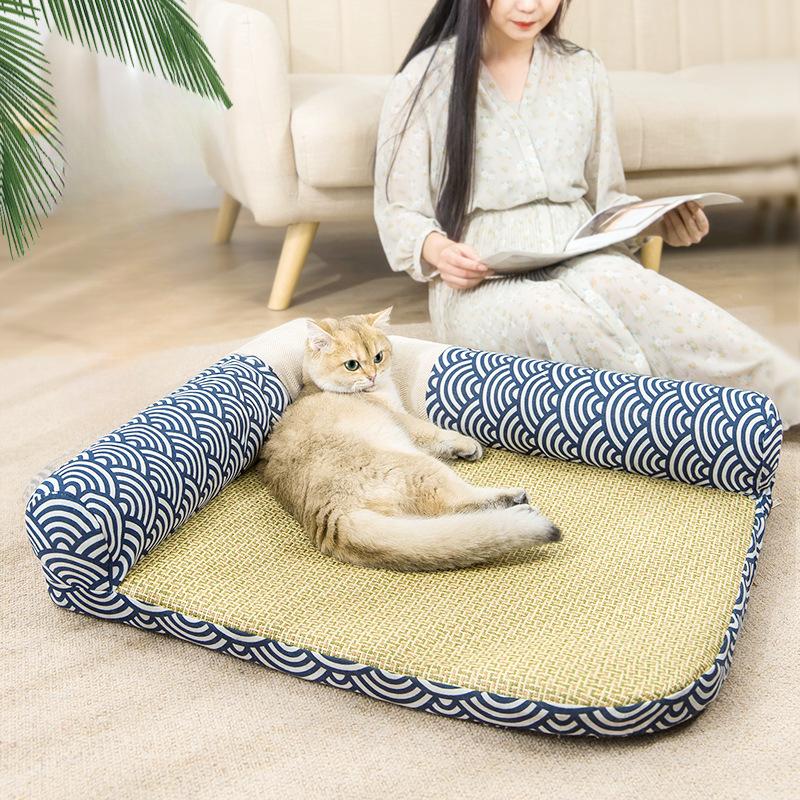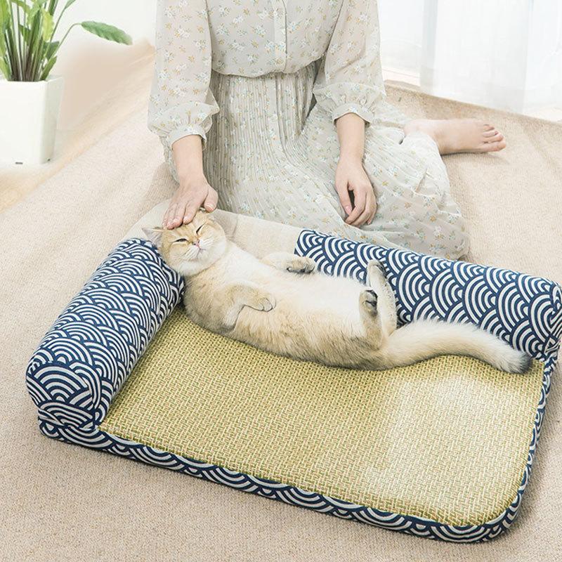 Летнее гнездо для кошки в японском стиле, летний прохладный и съемный угловой коврик, всесезонный коврик, собачья будка, гнездо для кошки, коврик из ротанга, принадлежности для кошек