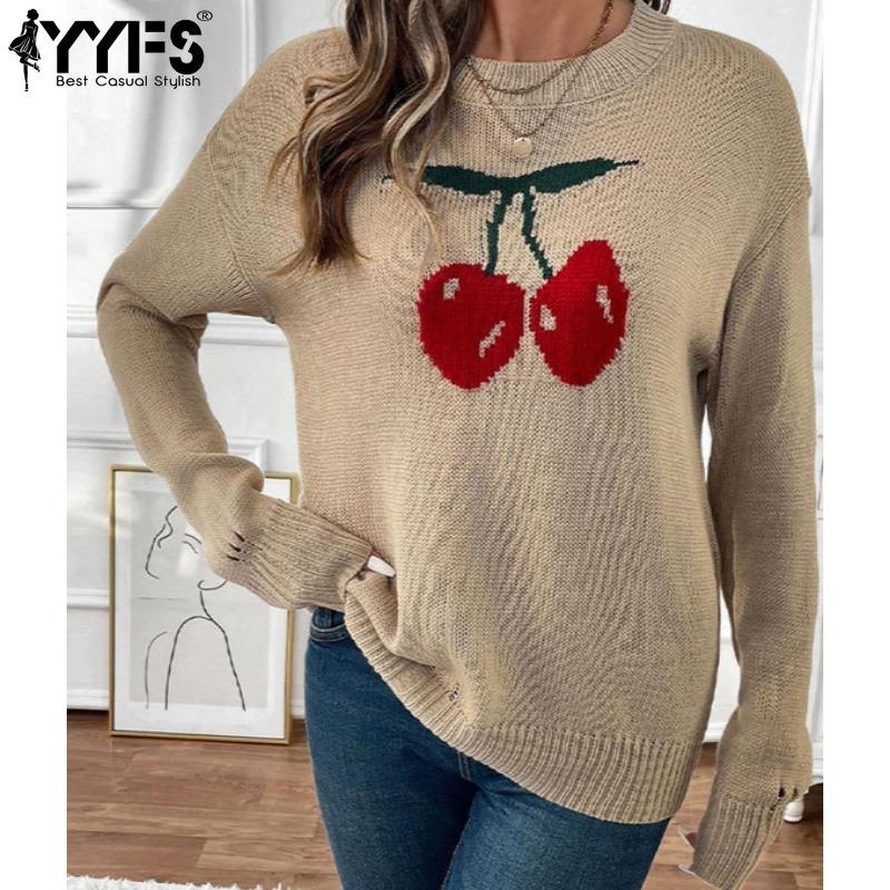YYFS Женские модные повседневные свитера с длинным рукавом и круглым вырезом на осень-зиму