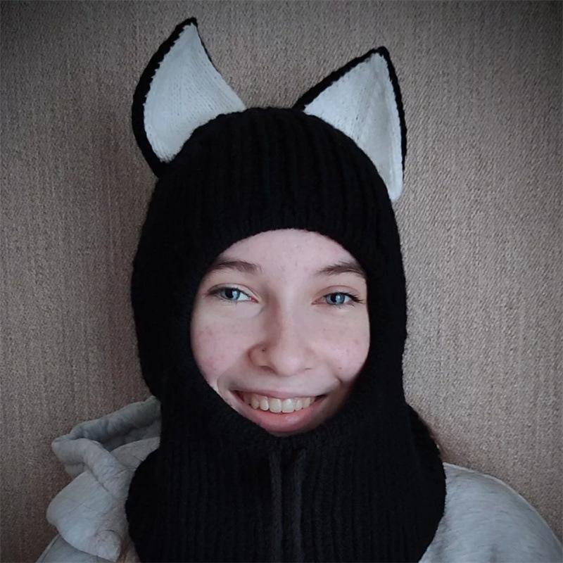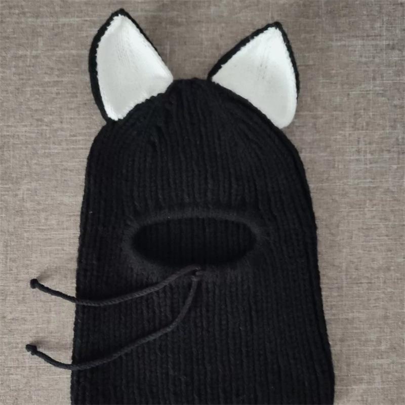 Вязаный капюшон с медвежьими ушками, лыжная маска, балаклава, модная взрослая шапка