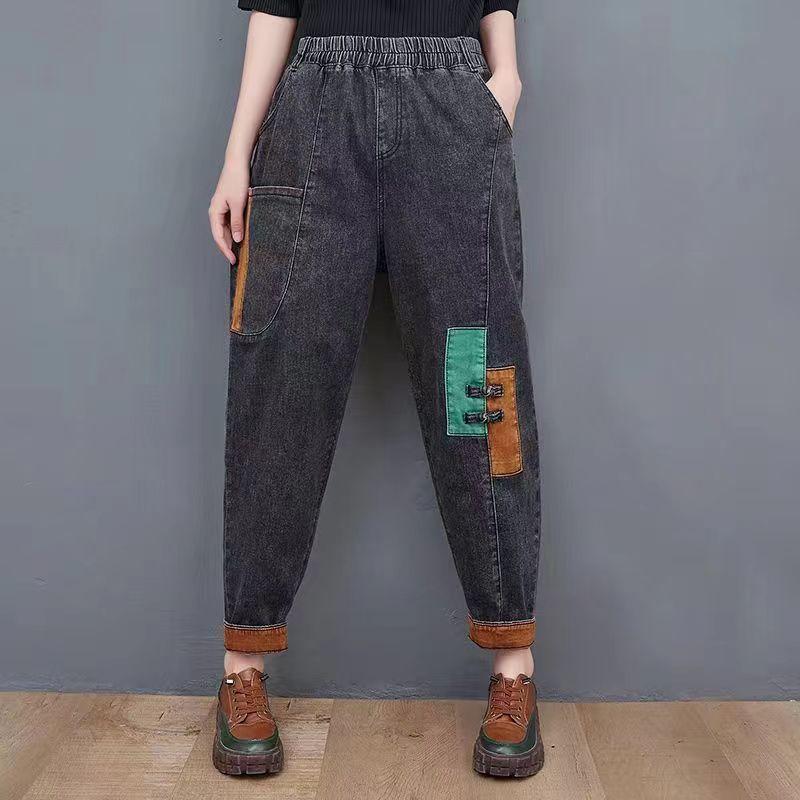 Осенне-зимние ретро-лоскутные джинсы из одного бархата для женщин с высокой талией, свободные, узкие, универсальные, модные штаны-шаровары для папы