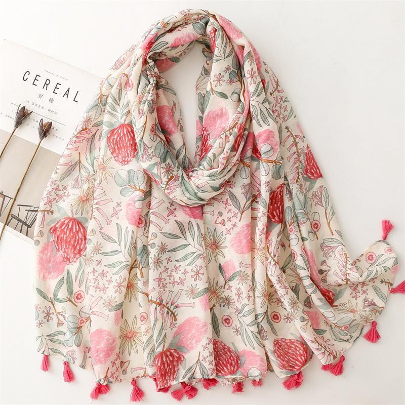 2024 Four Seasons Хлопок и конопляная текстура шарф, маленький свежий розовый растительный цветок кисточка шелковый шарф, теплая шаль для женщин — купить товар онлайн с бесплатной доставкой по всему миру!