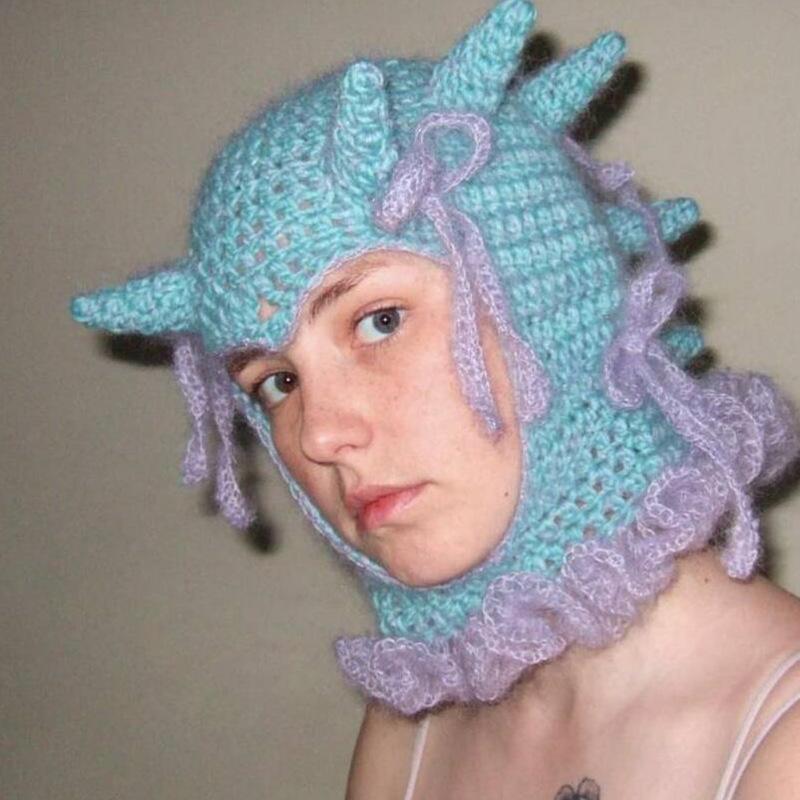Новая вязаная крючком забавная шапка с крестообразным рогом, персонализированная балаклава