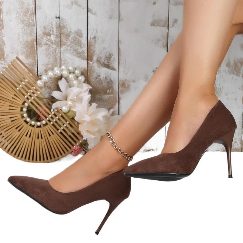 Женская обувь 2024 года, модные женские туфли на высоком каблуке, горячая распродажа, большие размеры, однотонные, для офиса и карьеры, сексуальные туфли с острым носком для женщин