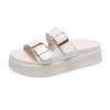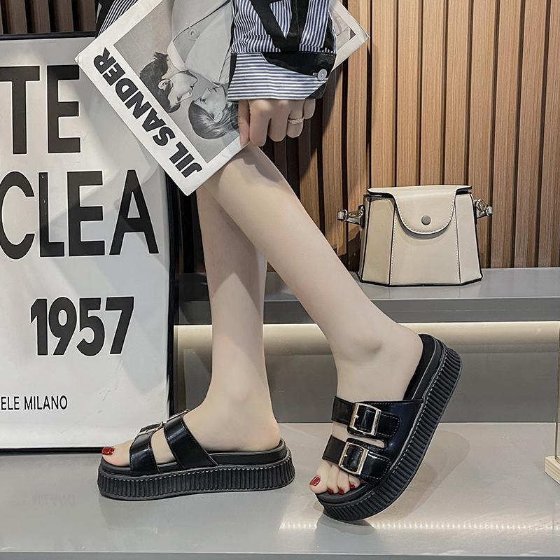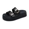 Новые тапочки на платформе, женские модные шлепанцы с пряжкой на толстой подошве, пляжные сандалии с открытым носком, повседневные удобные тапочки на танкетке