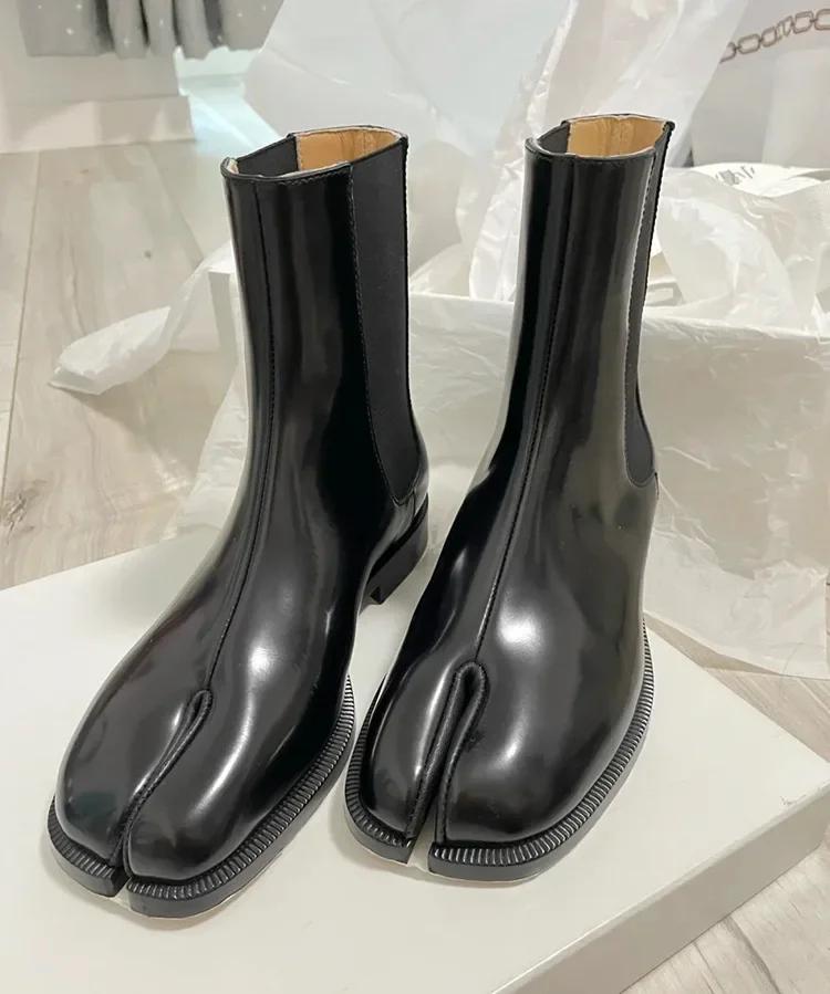 Женские ботинки Tabi из натуральной кожи, новое поступление, высокие туфли Chelsea с раздельным носком для девочек, фирменный дизайн, ботинки на толстом каблуке, обувь — купить товар онлайн с бесплатной доставкой по всему миру!