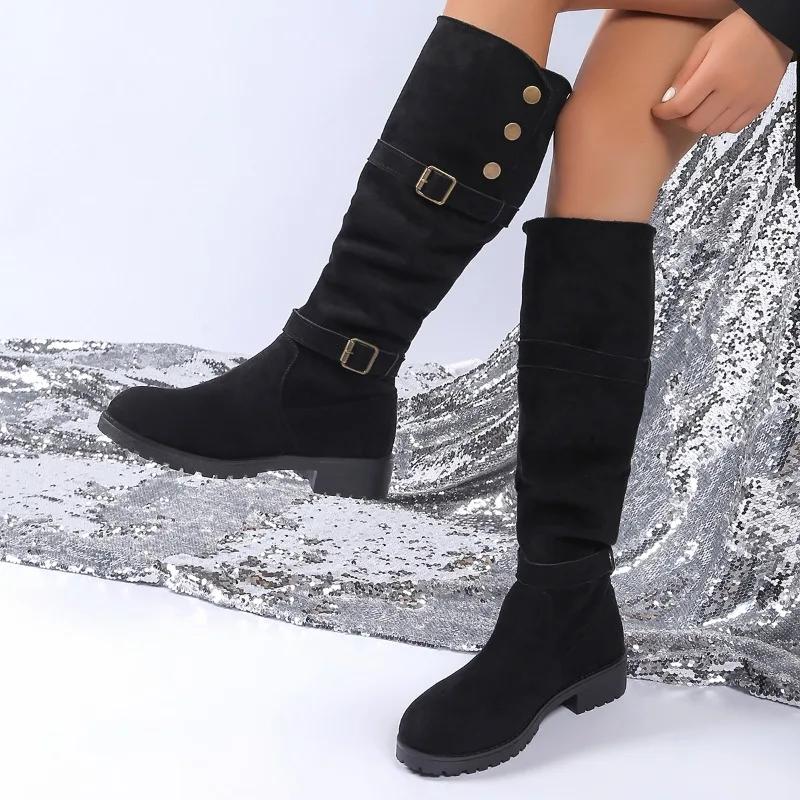 Женская обувь 2024 Высокое качество Слипоны Женские ботинки Модные с пряжкой-ремнем Современные ботинки Женские Новые с заклепками Большого размера Ботфорты