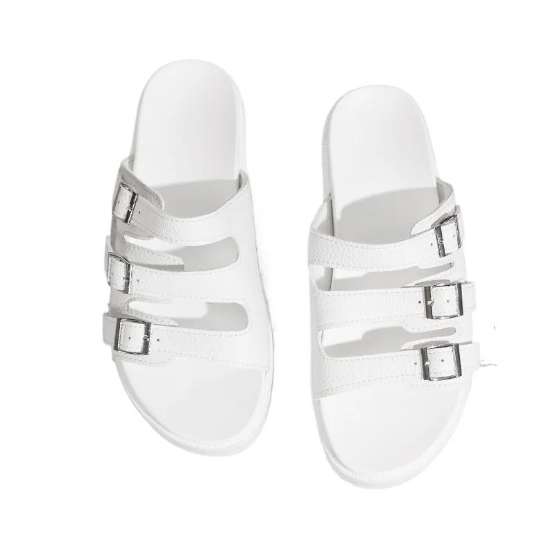 Женская обувь 2024 года, модные женские тапочки с открытым носком, горячая распродажа, повседневные тапочки с пряжкой на ремне, женские новые тапочки на платформе больших размеров