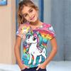 2025 Милая футболка с 3D-принтом для девочек с изображением животных, милые футболки для девочек, детская подарочная футболка с коротким рукавом, повседневный топ, детская одежда