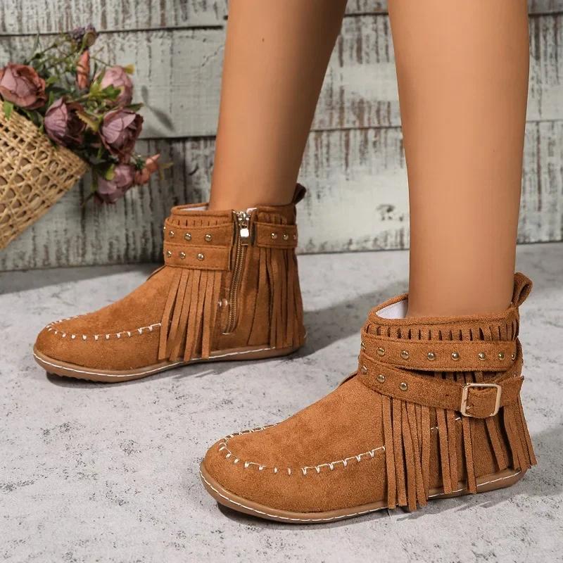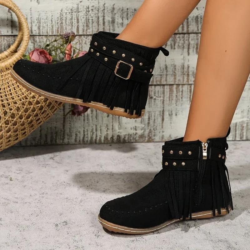 Женские ботинки челси на плоской подошве с кисточками, зимние повседневные замшевые прогулочные туфли 2024 года, новый стиль, удобные модные ботинки в готическом стиле