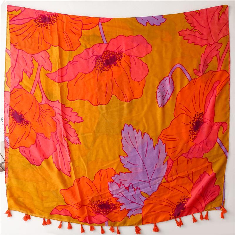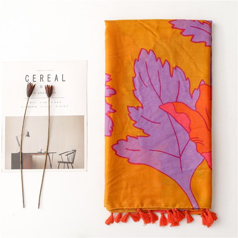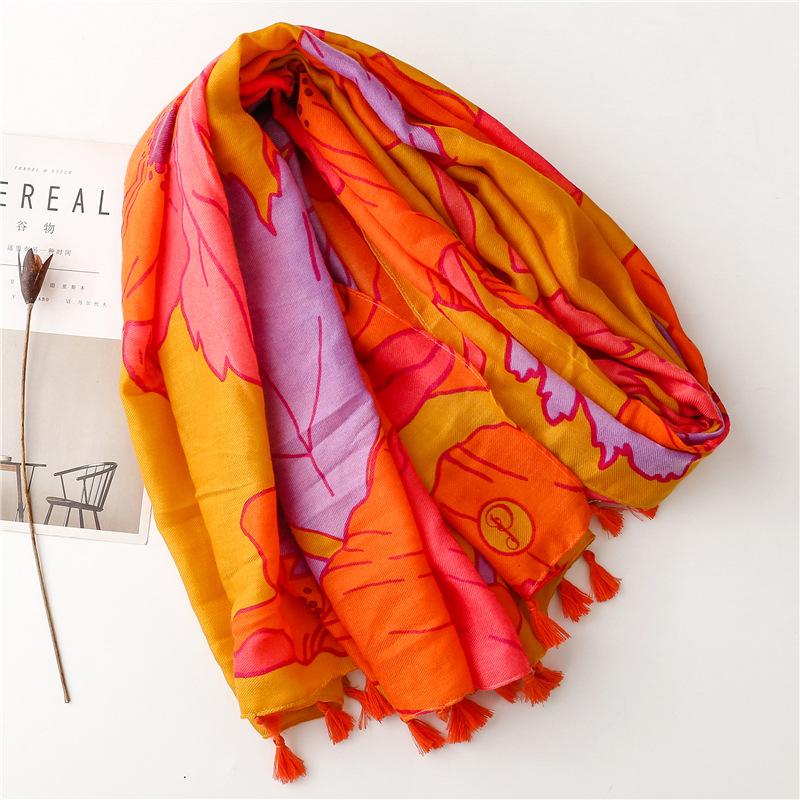 Женский мягкий шарф из хлопка и конопли Four Seasons, ретро-шарф с оранжевым цветком, солнцезащитный дорожный платок, украшение на шею