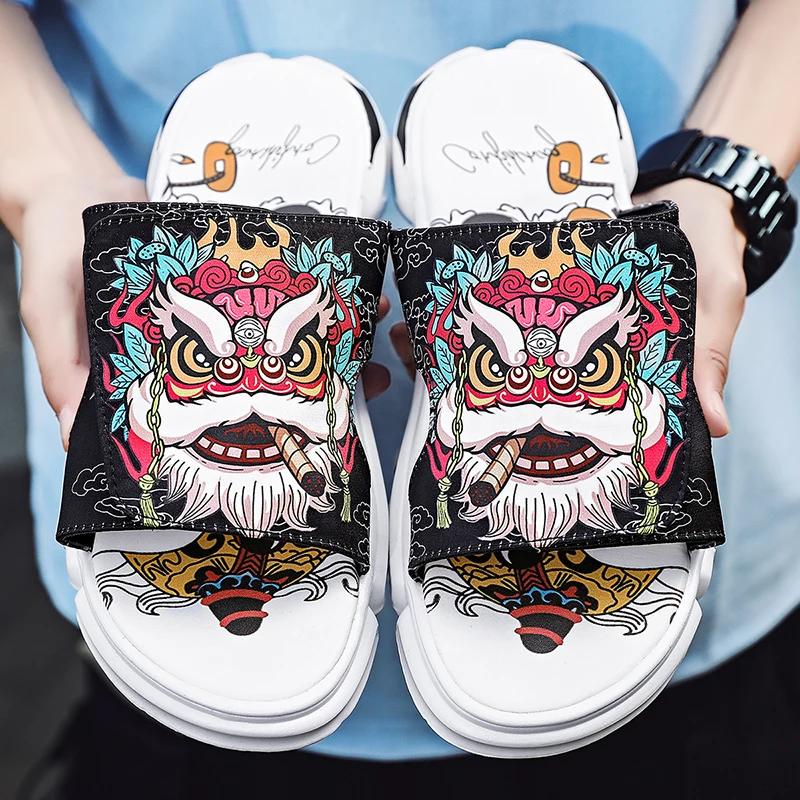 Летние молодежные тапочки мужские уникальные дизайнерские высококачественные тапочки нескользящие наружные шлепанцы сандалии с толстым носком