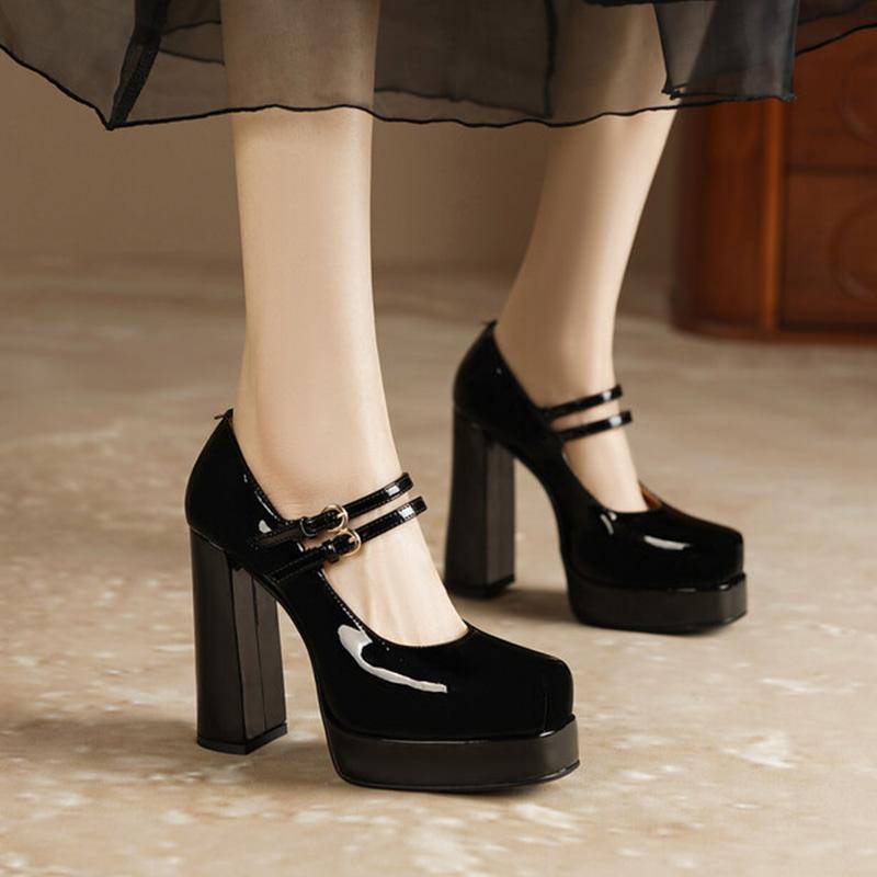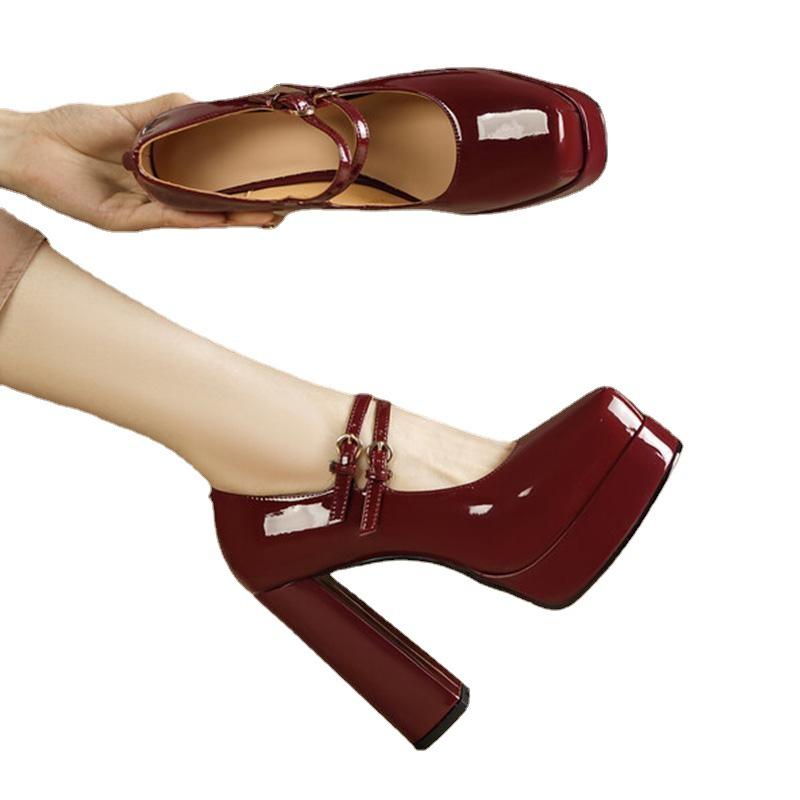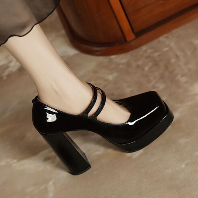Туфли Мэри Джейн на французской платформе, женские, весенние, новые, квадратные, толстые, лакированные, кожаные туфли-лодочки