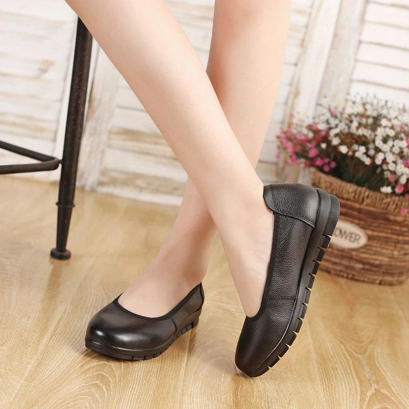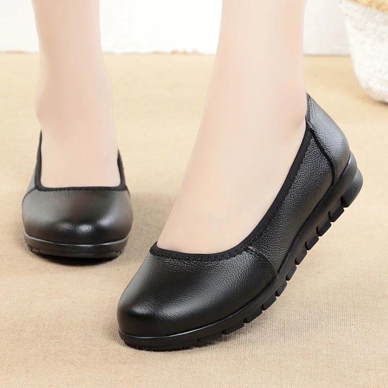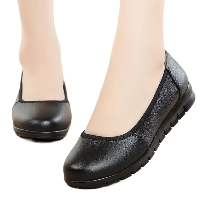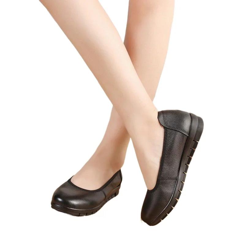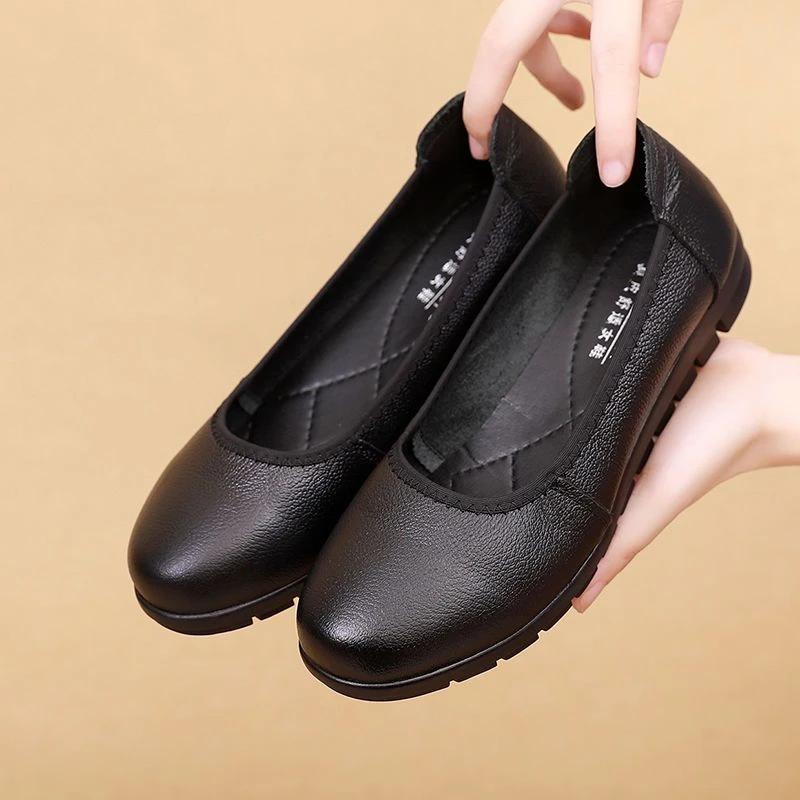 2024 Высококачественная женская обувь из искусственной кожи, женские туфли на плоской подошве, повседневные туфли на плоской подошве с круглым носком и неглубокой мягкой подошвой, женские туфли без застежек
