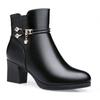 Модные женские сапоги, осенние, черные, с круглым носком, универсальные, на высоком каблуке, зимние, плюшевые, теплые, на молнии, ботильоны для женщин, Botas Mujer