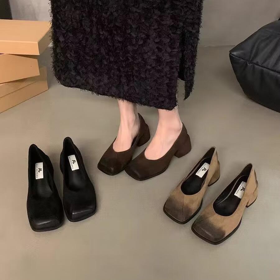 Модные роскошные и модные французские туфли Мэри Джейн на высоком каблуке с неглубоким носком, женские толстые каблуки 2024 года, последний стиль с каблуками