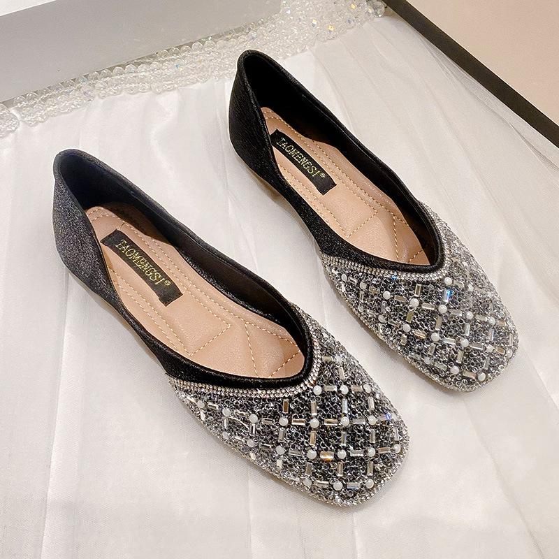Новые женские туфли на плоской подошве весна-лето женские дизайнерские туфли с круглым носком мерцающие кристаллы повседневные туфли модные мокасины без застежек 33-43