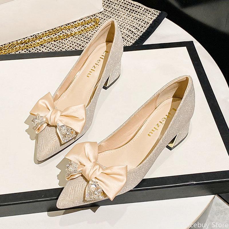 Туфли больших размеров для женщин, модные туфли-лодочки, сексуальные новые туфли для девушек с острым носком и высоким каблуком, туфли для подружек невесты со стразами и бантом