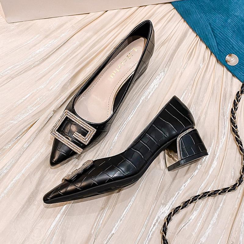 Туфли больших размеров для женщин Туфли-лодочки на толстом каблуке Туфли-лодочки для девочек с острым носком Туфли на высоком каблуке Свадебные туфли со стразами