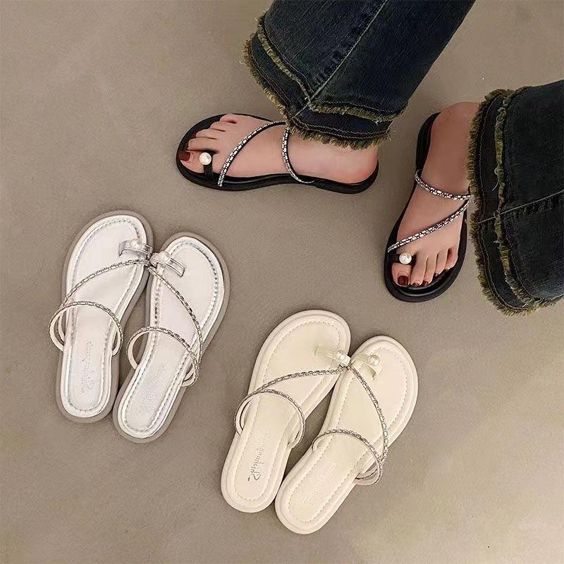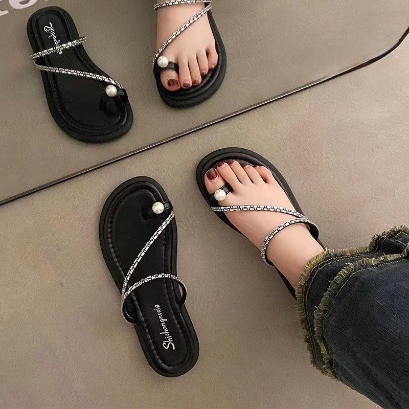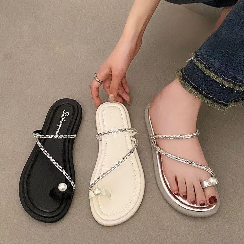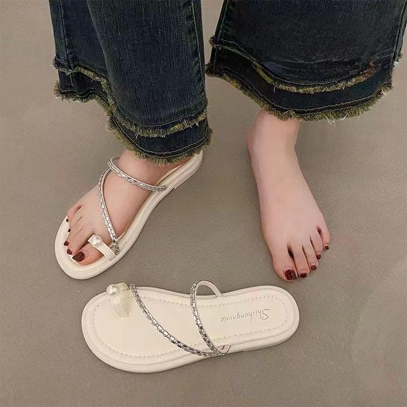 Модные Роскошные Сказочные Прохладные Шлепанцы для Уличной Носки Шлепанцы Елочкой 2024 Лето Новые Мягкая Подошва Французские Шлепанцы