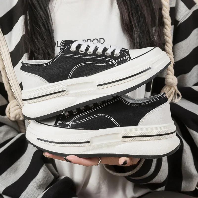 Модная женская обувь на толстой подошве, дышащая, новая весенне-осенняя, на шнуровке, холщовая, повседневная, удобные кроссовки Zapatos De Mujer