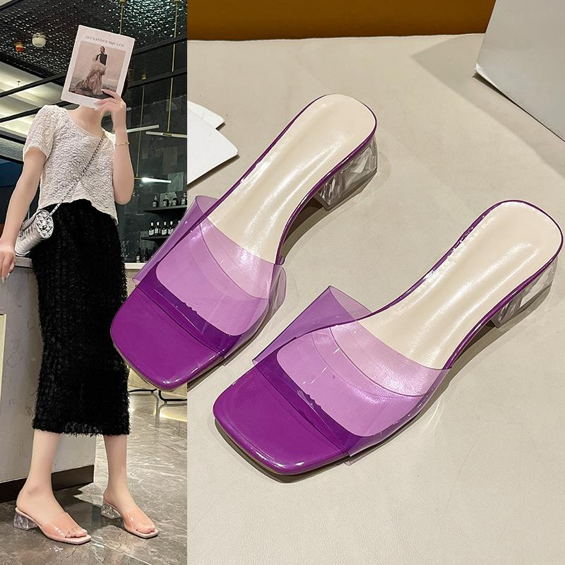 Модные тапочки женские 2024 корейские туфли с открытым носком и квадратной головкой, женские модные прозрачные босоножки на высоком каблуке, сексуальные высокие каблуки — купить товар онлайн с бесплатной доставкой по всему миру!