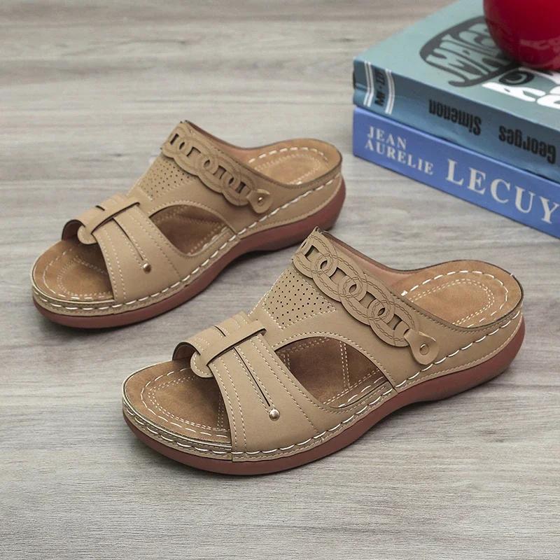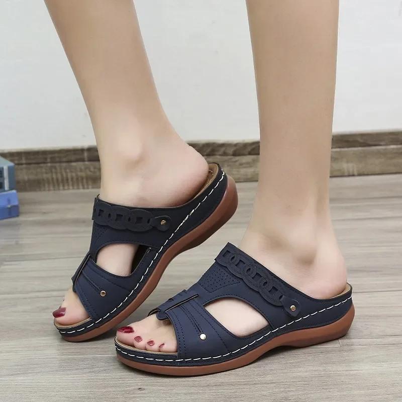 2024 Новые модные популярные женские тапочки с открытым носком, удобная танкетка, женская обувь для пляжа и отдыха, Zapatillas Mujer