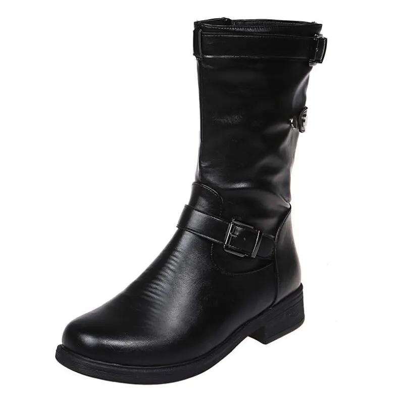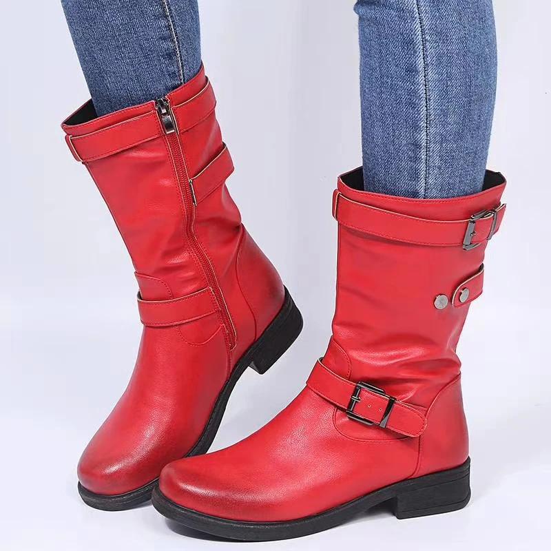 Женские сапоги до середины голени с пряжкой, женские полусапожки на низком квадратном каблуке с молнией 2024 года, женские туфли на плоской подошве из искусственной кожи, черные, серые, размер 43