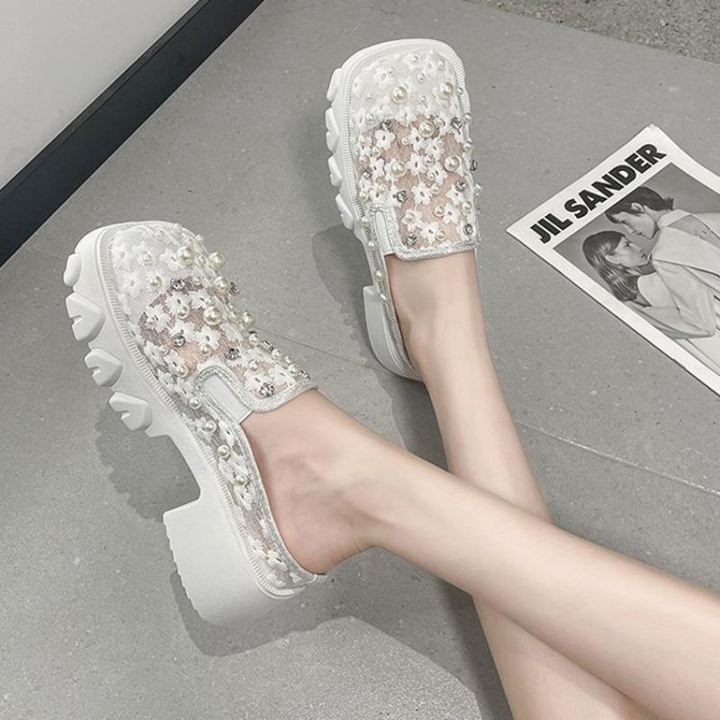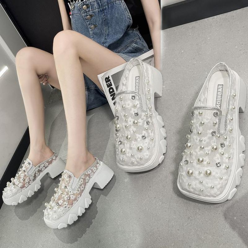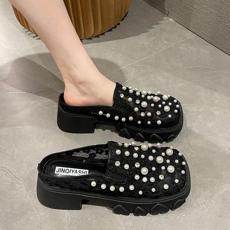 Модные женские полутапочки Baotou, корейские повседневные сандалии на платформе без каблука, сетчатые дышащие туфли на плоской подошве, нескользящие, универсальные, Zapatos Mujer