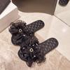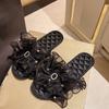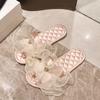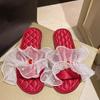 Модные мягкие тапочки женские корейские кружевные атласные тапочки с открытым носком на плоской подошве модные домашние сандалии женские нескользящие удобные женские туфли