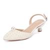 Модные новые туфли на высоком каблуке для женщин, модные универсальные босоножки с жемчужным узором и бриллиантами, тонкие каблуки, неглубокий носок, свадебные туфли