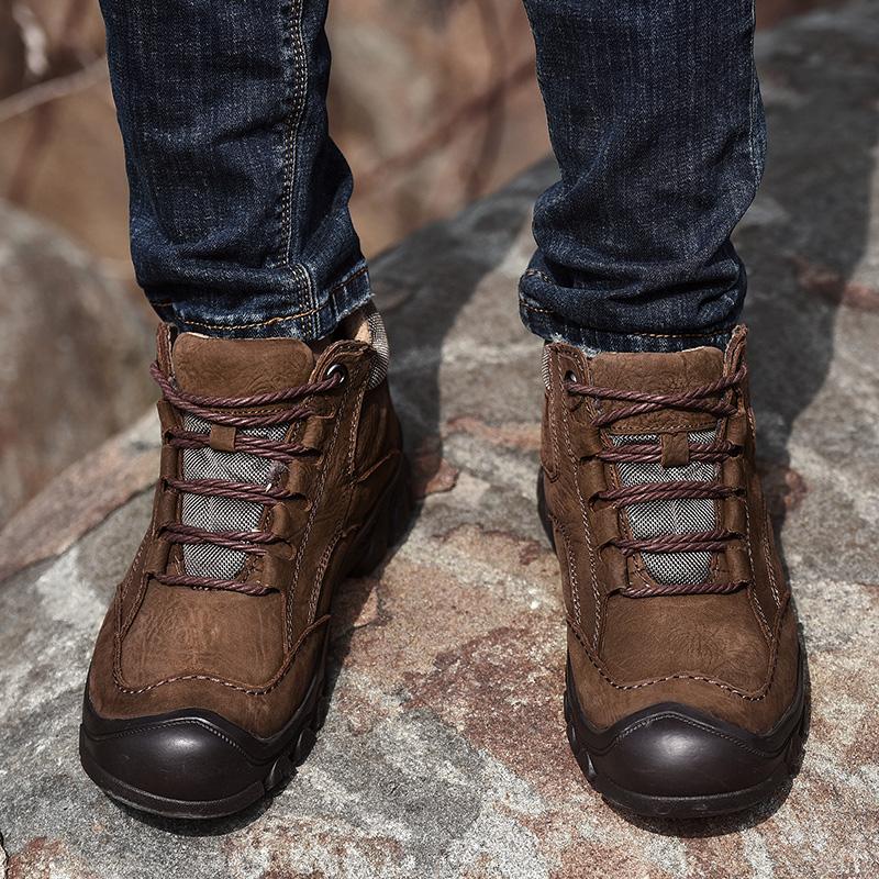 Мужская обувь из натуральной кожи, водонепроницаемые уличные мужские ботинки, удобная мужская прогулочная обувь для походов