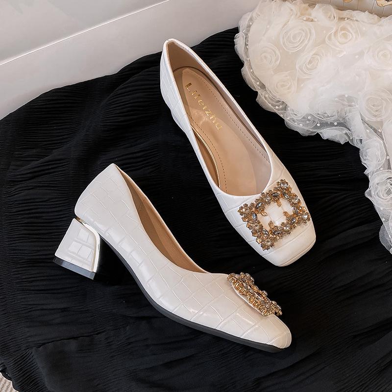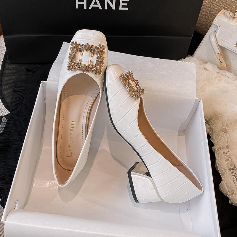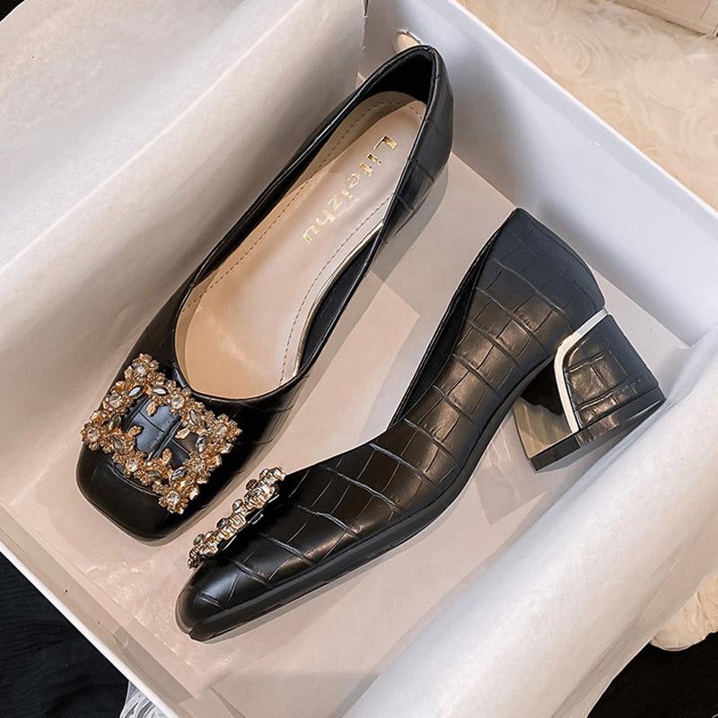 Новые туфли для женщин, модные туфли-лодочки, весенние туфли OL Party, кожаные повседневные туфли на высоком каблуке, женские туфли-лодочки со стразами, размеры 35-43