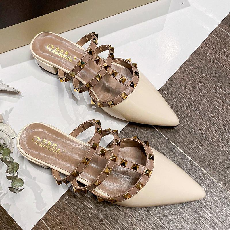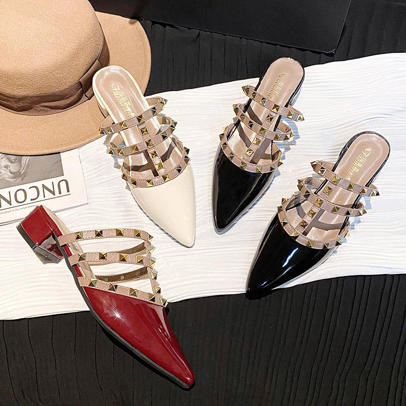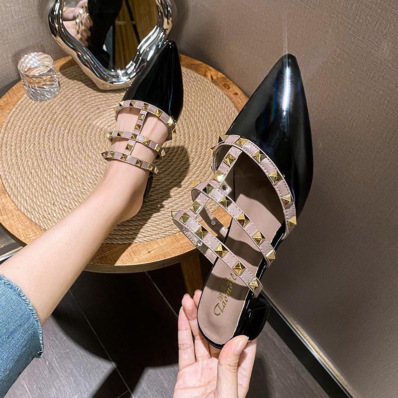 2024 Новые женские современные сандалии, летняя мода, туфли-лодочки с острым носком и заклепками, красивые туфли на высоком каблуке