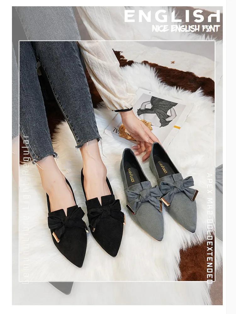 Модные женские туфли Мэри Джейн на весну и осень, новые туфли на плоской подошве с заостренным носком и бантом, повседневные большие женские туфли 41-43