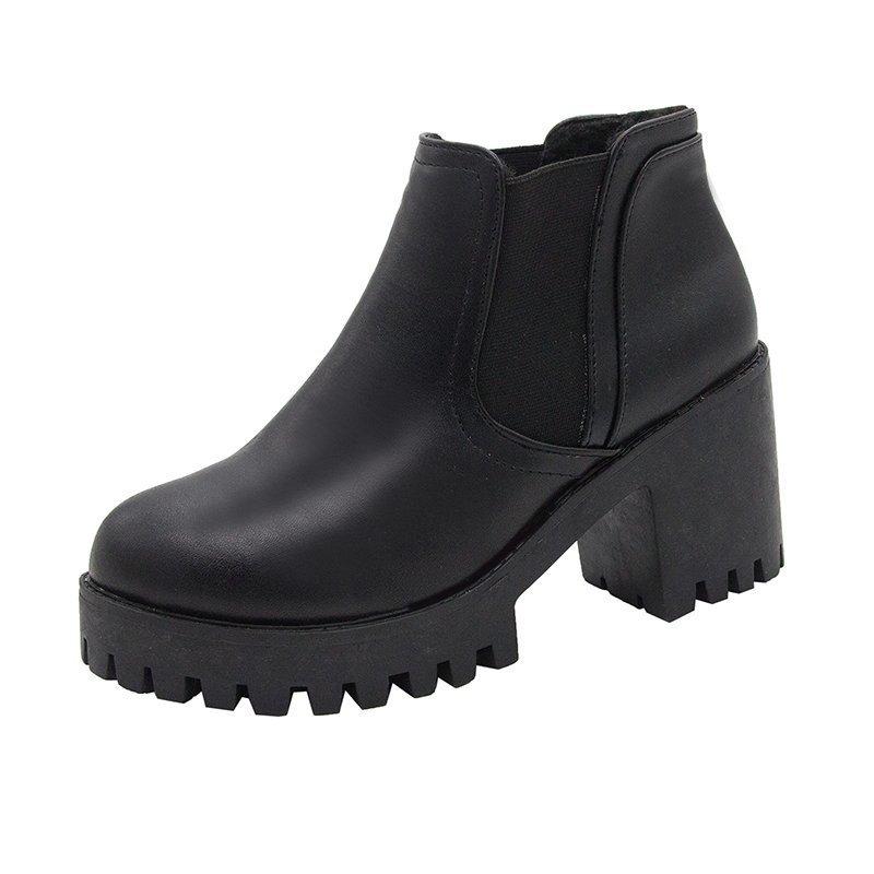 Модные роскошные женские весенние и осенние новые корейские модные сапоги на толстом каблуке с круглым носком, повседневные удобные черные короткие сапоги — купить товар онлайн с бесплатной доставкой по всему миру!
