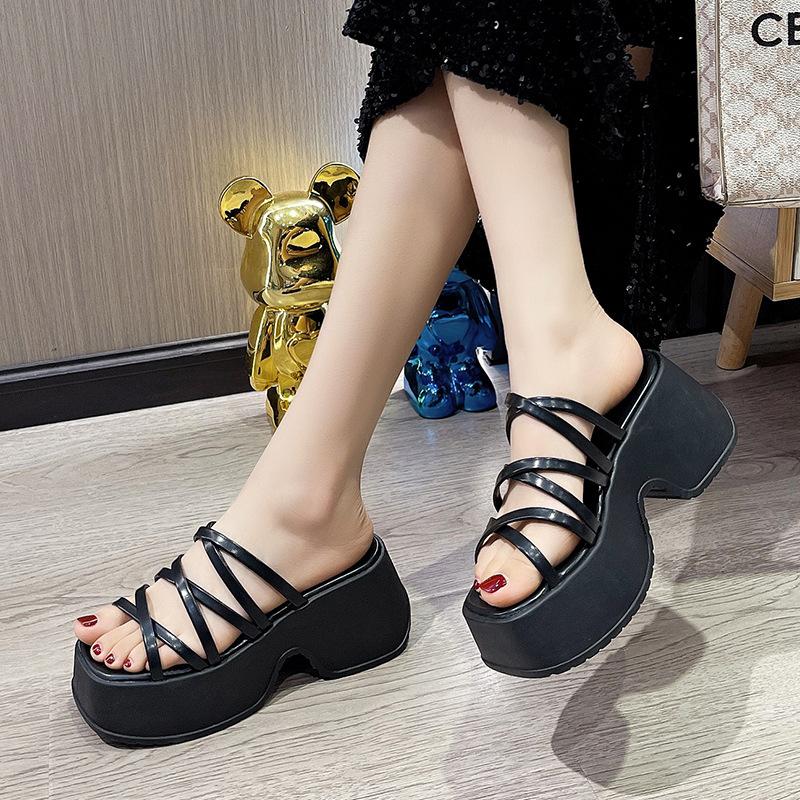 8 см Высокий каблук Толстая подошва Тапочки Женские летние модные туфли Универсальные тапочки для верхней одежды Тонкий ремень Платформа Римские сандалии — купить товар онлайн с бесплатной доставкой по всему миру!