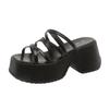 8 см Высокий каблук Толстая подошва Тапочки Женские летние модные туфли Универсальные тапочки для верхней одежды Тонкий ремень Платформа Римские сандалии