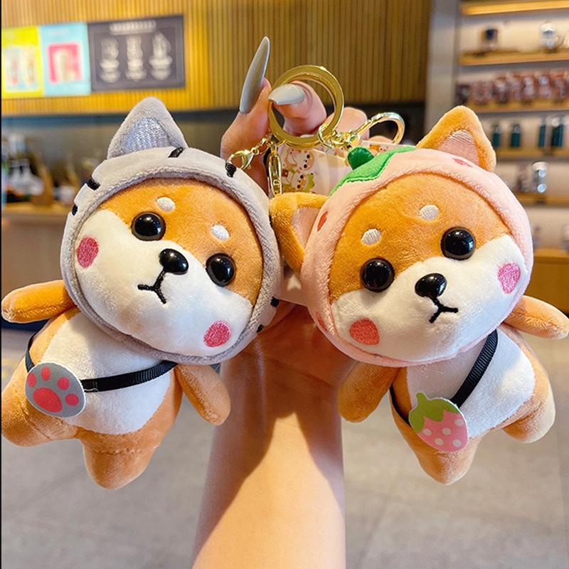 Мультяшная клубника сиба-ину плюшевая кукла игрушка брелок милый брелок студенческий рюкзак кулон женская сумка брелок
