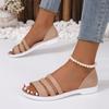 Мода 2024 года, высококачественные новые женские сандалии с открытым носком и квадратным каблуком, трендовые универсальные повседневные сандалии для отдыха на открытом воздухе, однотонные сандалии из искусственной кожи на плоской подошве