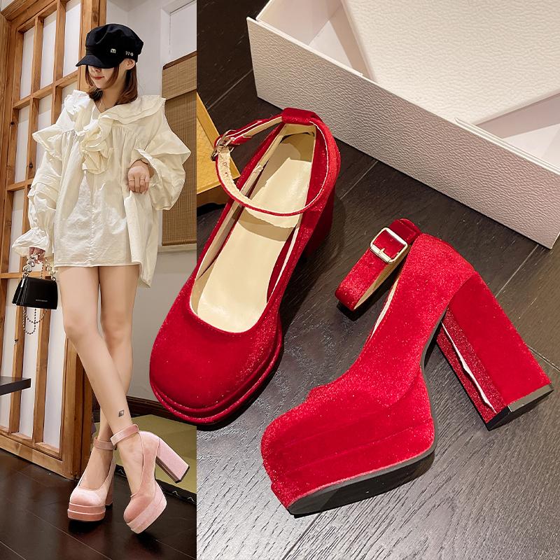 Модные сексуальные туфли AJGS на толстой подошве для женщин на каблуках 12 см, модные водонепроницаемые туфли-лодочки на платформе с пряжкой, свадебные туфли на высоком каблуке