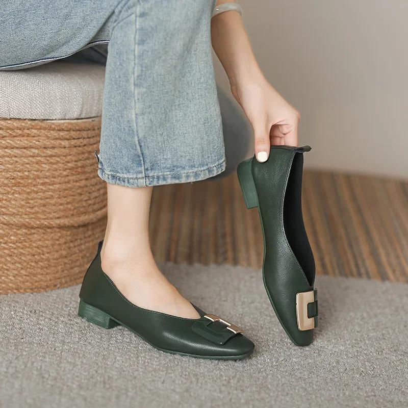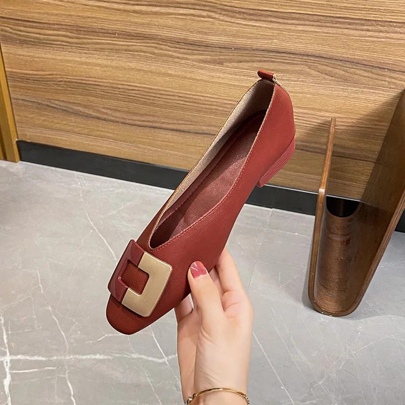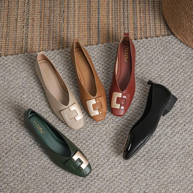 Модные французские туфли на низком каблуке с квадратной головкой и неглубоким носком, женские мягкие туфли на плоской подошве, дизайнерские черные рабочие туфли Zapatos De Mujer