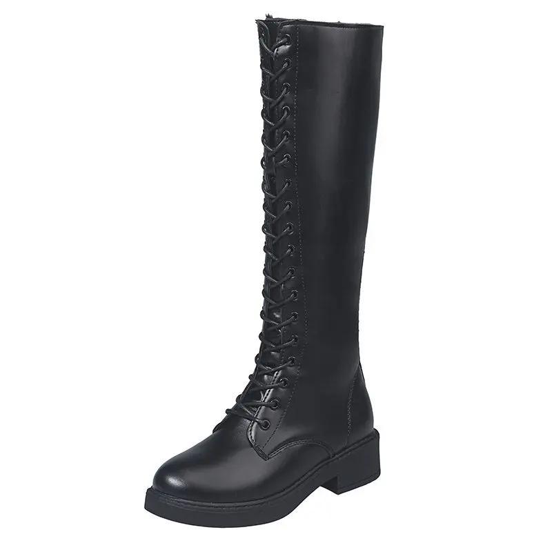 Новые большие размеры высокие сапоги женские квадратные высокие каблуки платформы женские сапоги на шнуровке осенне-зимние сапоги женские