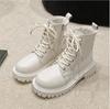 Модные женские ботильоны на платформе, осень-зима 2024, черные, белые, с толстой подошвой, мотоциклетные ботинки из искусственной кожи, нескользящие, женские