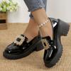 Туфли со стразами и квадратной пряжкой, женские, 2024, новые туфли-лодочки с круглым носком, черные лакированные туфли Мэри Джейн, модные женские туфли-лоферы без застежек
