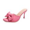 Новые летние женские туфли на высоком каблуке, розовые туфли с квадратным носком и бантом, модные туфли для женщин, сексуальные сандалии на тонком каблуке