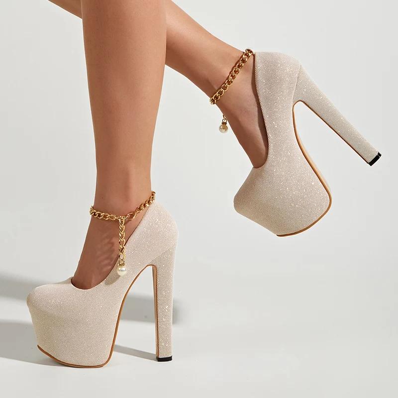 Модные сексуальные туфли-лодочки из ткани с блестками, пряжкой, ремешком, на платформе, свадебные туфли с открытым носком, женские туфли-лодочки на квадратном каблуке для стриптиза, с круглым носком — купить товар онлайн с бесплатной доставкой до всему миру!