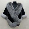 Женское пальто с воротником из лисьего меха из искусственного меха, плащ-пончо, платье, шаль, сохраняющий тепло шарф, осень и зима